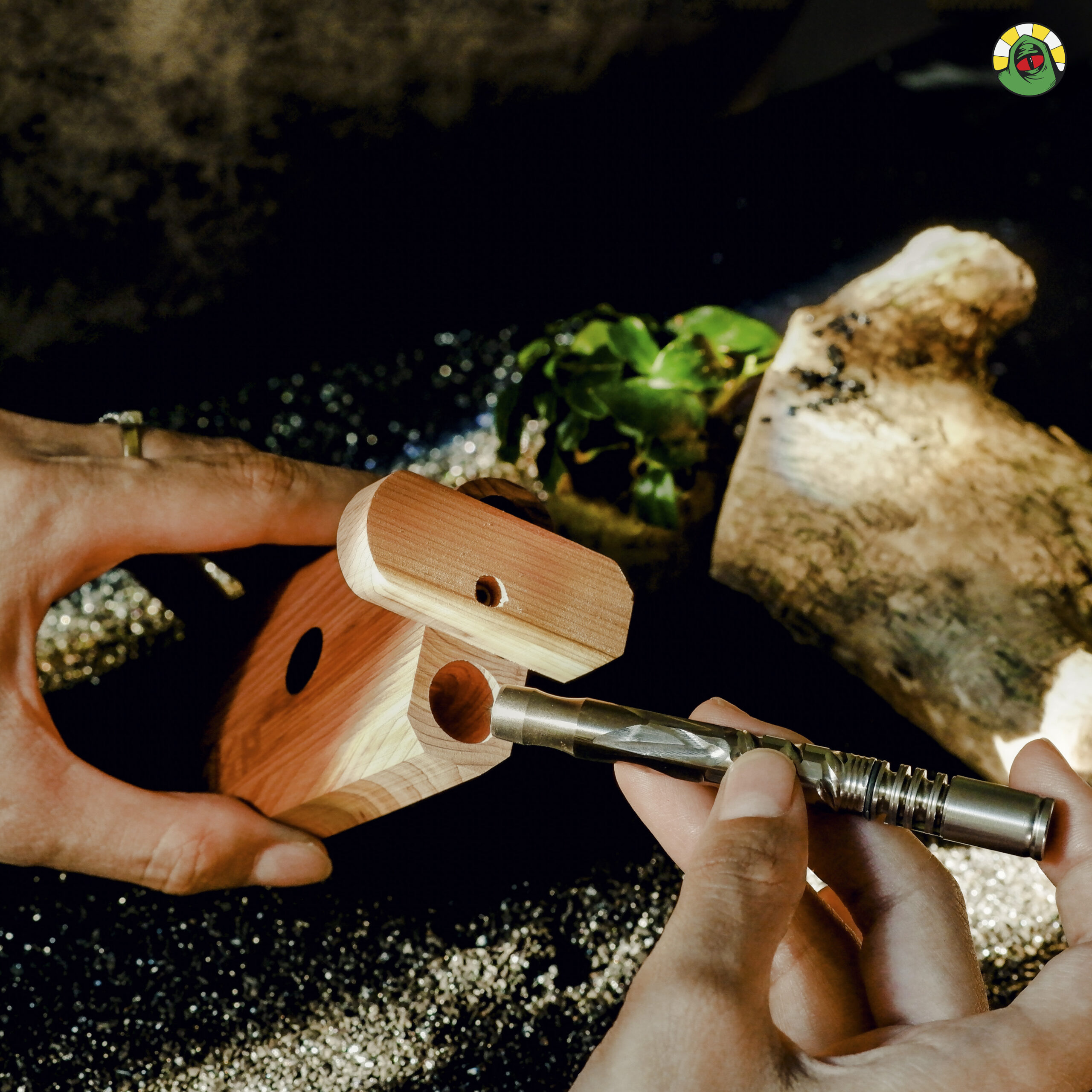 Lưu trữ chiếc máy hóa hơi DynaVap tiêu chuẩn (92mm) của bạn một cách phong cách với DynaStash: Cedar.