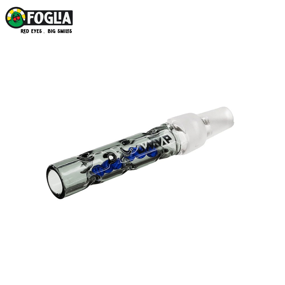 The BB6: Midsection là thân giữa bằng thủy tinh borosilicate dành cho hệ thiết bị DynaVap. Bên trong có 6 hạt thủy tinh xanh cùng các rãnh (divots) dọc thân giúp tăng diện tích tiếp xúc, cho luồng hơi mát và dễ kéo hơn. Thân có lỗ khí (air port) để kiểm soát luồng gió và đầu miệng thuôn tương thích với đầu nối nữ 10 mm và 14 mm, thuận tiện dùng cùng các bộ lọc nước. Lưu ý: đây chỉ là phần midsection; cần gắn thêm Tip & Cap để tạo thành bộ hoàn chỉnh.